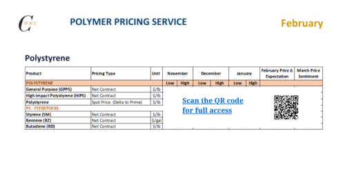 Polystyrene – February – 2026 Monthly Price Expectation Report
