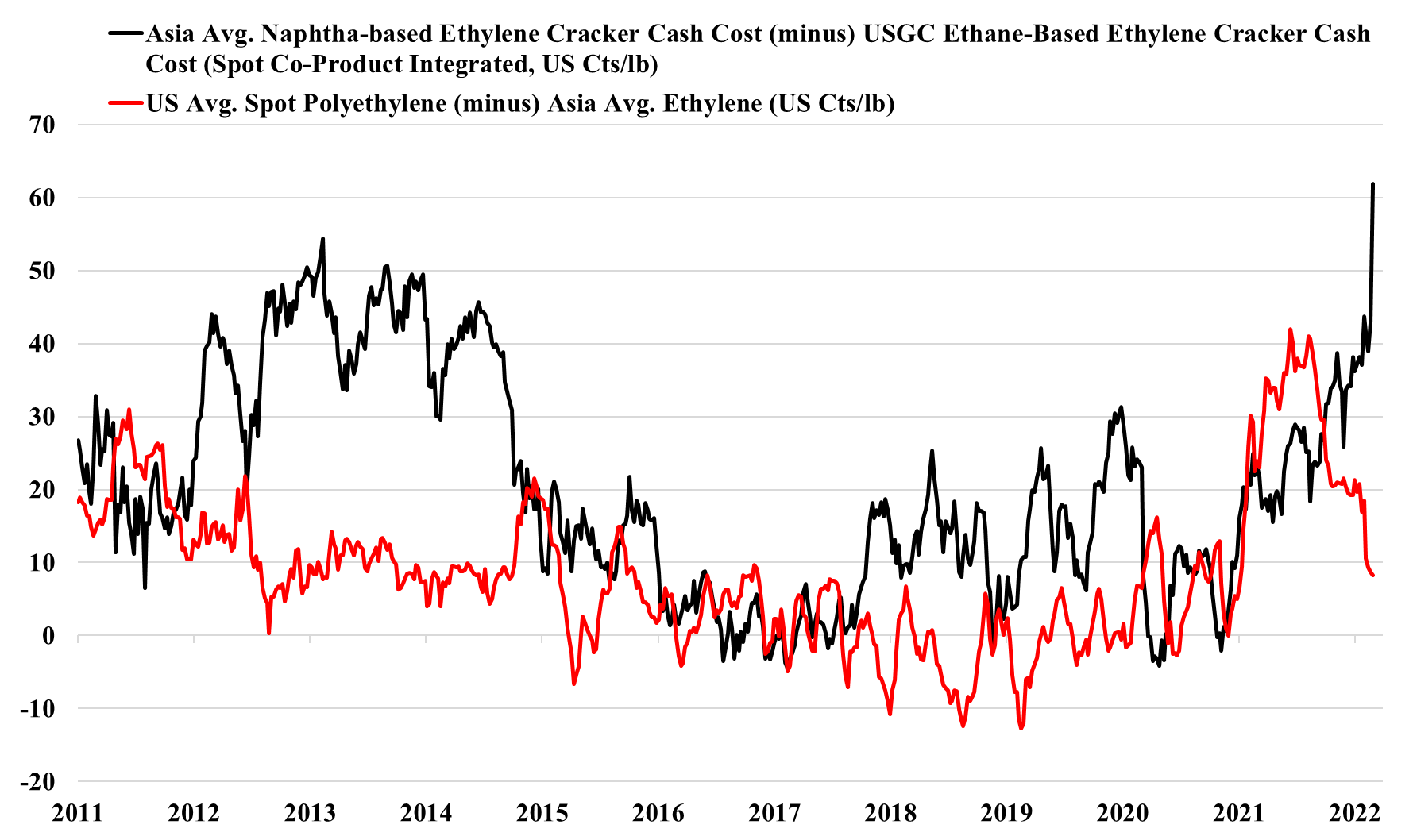 Base Chemical Global Analysis Global Chemical Update – Sea of Heartbreak US commodity chemical producers meaningfully benefit from the global energy market surge WoW. Asia ethylene costs hit a record high relative to US levels, and March 7, 2022 No Comments