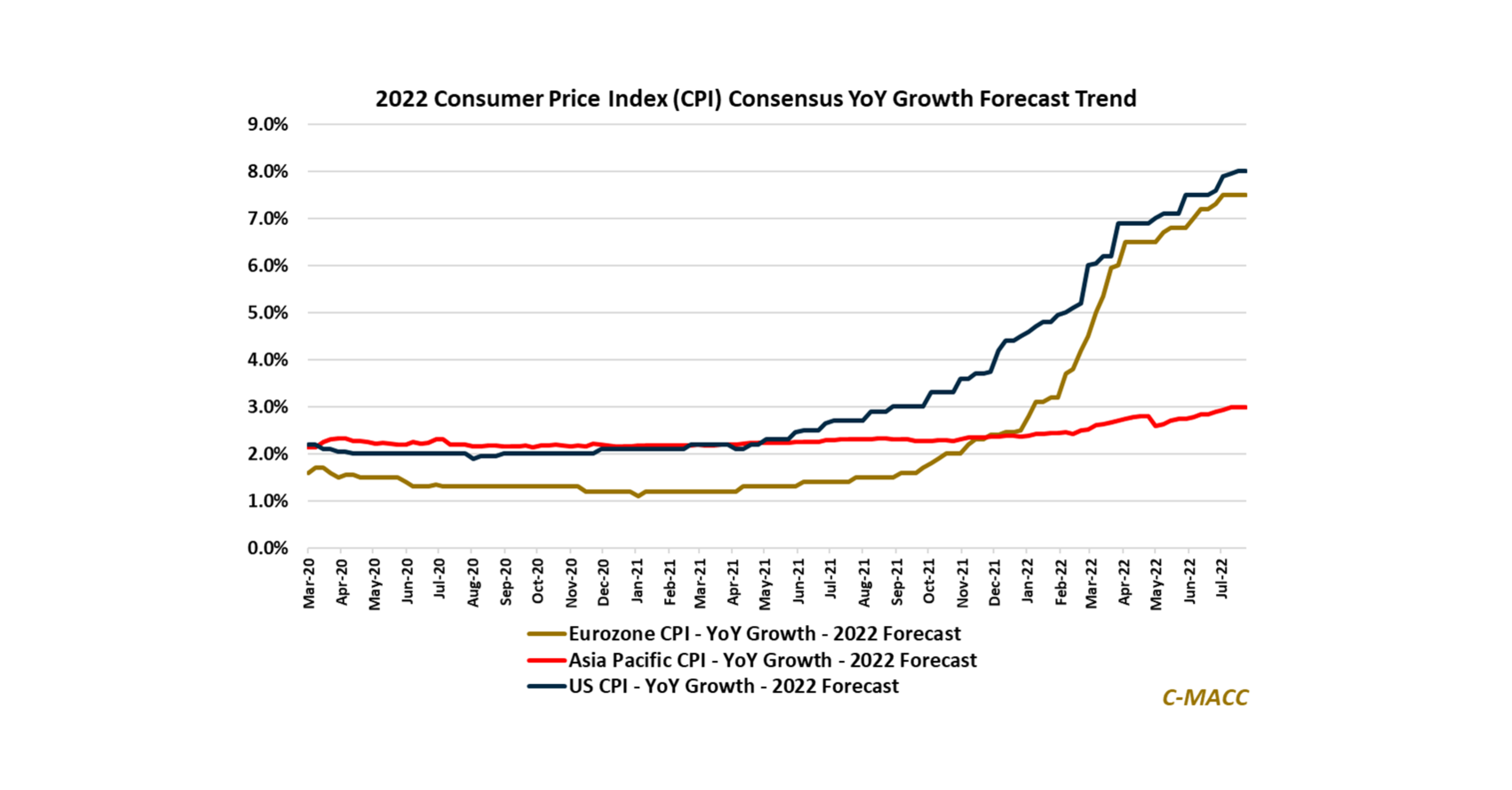 Western market consumer price inflation estimates for full-year 2022 have surged YTD to show notably more inflation than Asia – a concern for Western producers.<br