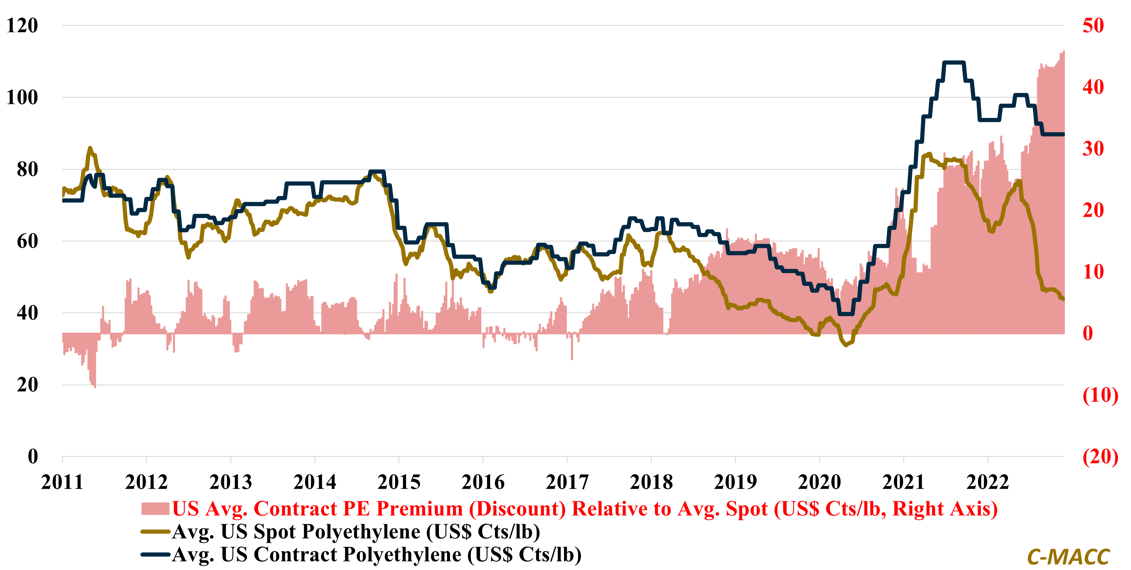 Global Market Analysis Livin’ On A Prayer, And Even The Holy Spirits Are Likely Questioning US PE Contract Support In 4Q22 US polyethylene (PE) contract price support relative to US spot prices in 4Q has pushed the contract premium to more than a 10yr high, and December 7, 2022 No Comments
