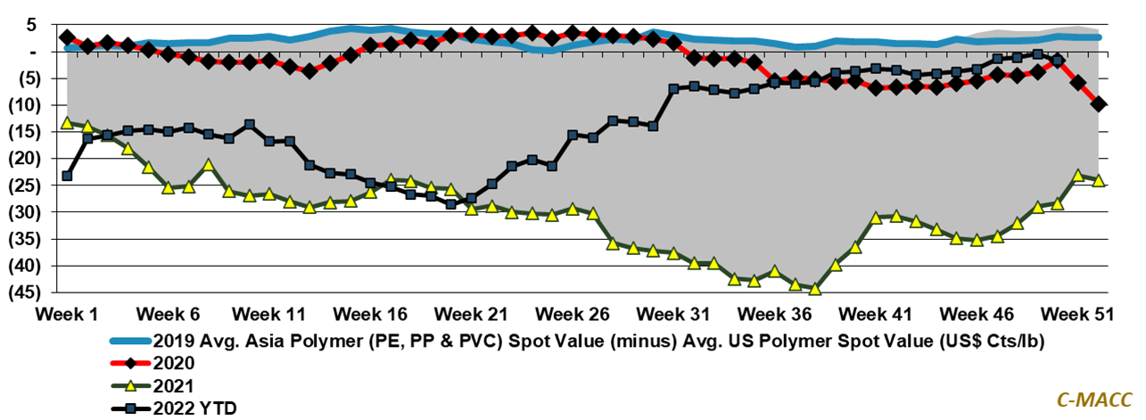 Global Market Analysis One Thing At A Time – US Polymer Premiums Have Mostly Dissipated, Contract Premiums Now In Focus As chemical product availability increased, US spot polymer premiums relative to Asia mostly dissipated in 2H22. Domestic contract premiums are likely the next to drop. December 21, 2022 No Comments