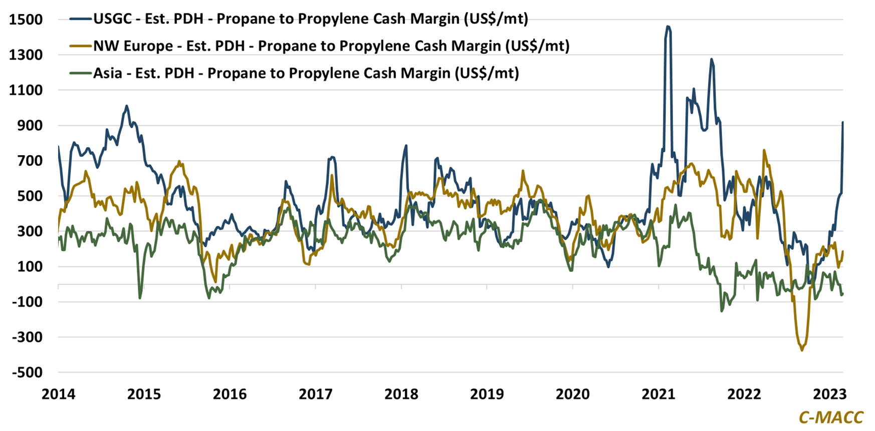 Base Chemical Global Analysis Global Chemical Update – Wonderin’ Bout the Wind On average, global spot monomer and polymer prices WoW were primarily unchanged. However, US propylene values significantly surged WoW, outpacing US spot propane and polypropylene March 6, 2023 No Comments