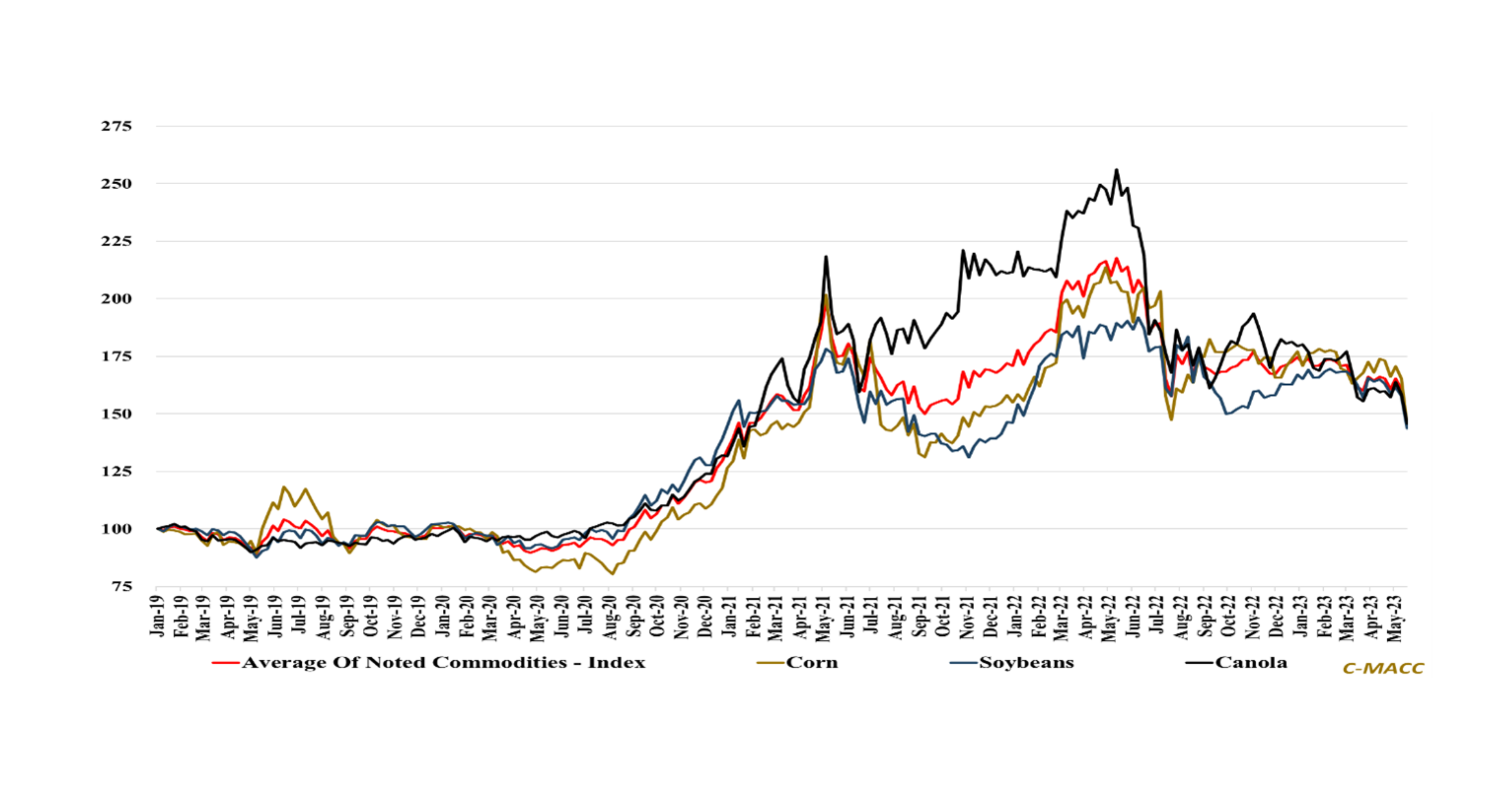 Crop prices reflect downward pressure WoW, putting many constructive farmer spending outlooks into question during a period where higher natural gas prices have further pinched