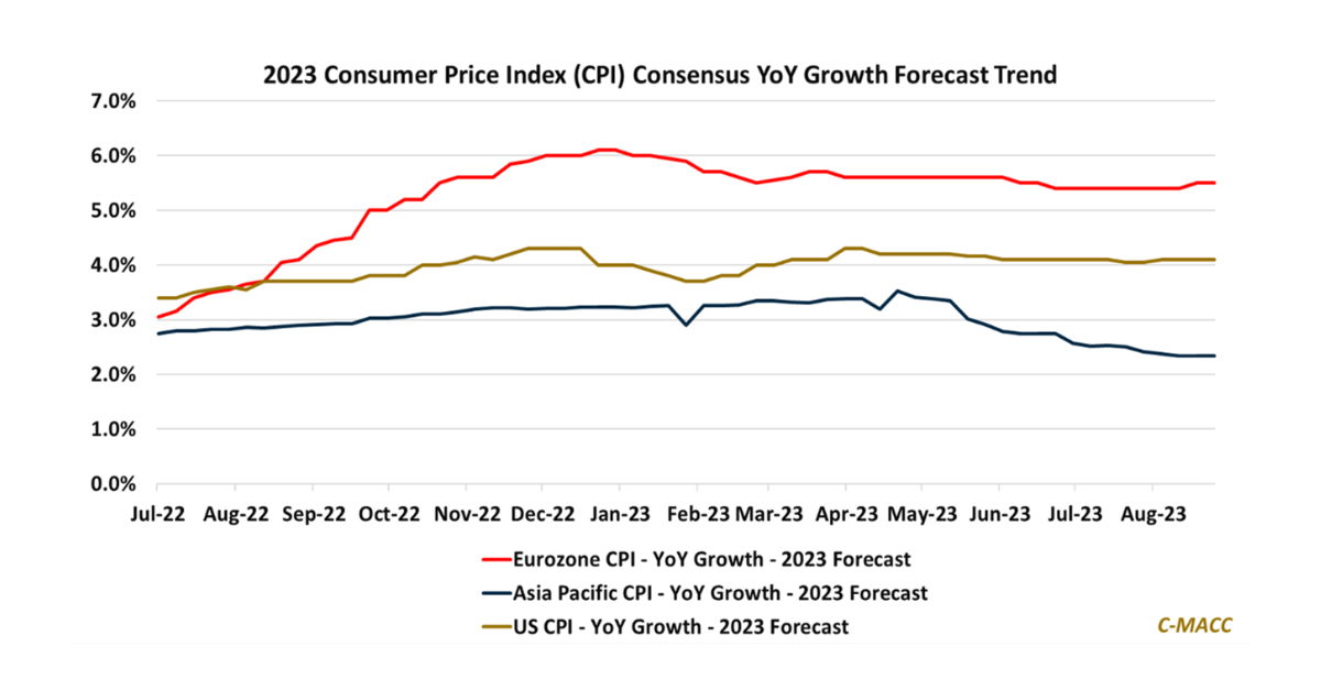 Global Market Analysis China Crisis – But More and More Competitive Consumer price expectations for Asia in 2023 have fallen from mid-2023 levels on an absolute basis and relative to the West – a plus for August 25, 2023 No Comments