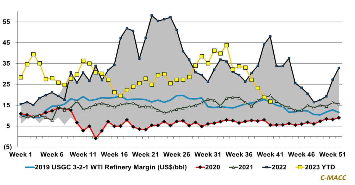 Global Market Analysis US Refining Margins Fall To A YTD Low, Clean Energy Shows Pimples – A Pirate Looks At Forty, Another Looks At Puberty The development of clean energy globally faces considerable risk if the cost of deployments rises while fossil-fuel alternatives get cheaper – we discuss a few October 20, 2023 No Comments