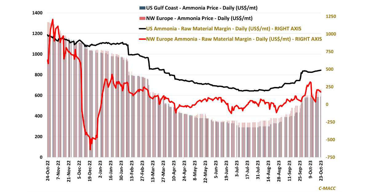 Base Chemical Global Analysis Global Chemical Update – Hits Different Global ammonia prices have risen QTD in 4Q23, led higher by supportive end-demand and increased Ex-US natural gas costs relative to US levels. We view October 23, 2023 No Comments