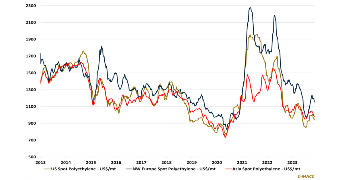 Global Market Analysis Less Gobble, More Wobble – Polymer Prices Weaken As Feedstocks Fall, Supply Rises, Buyer Urgency Bobbles Lower Higher crude oil prices and outages spurred a polymer price rebound in 3Q23 – many prices are still well above mid-2023 levels despite 4Q oil November 21, 2023 No Comments