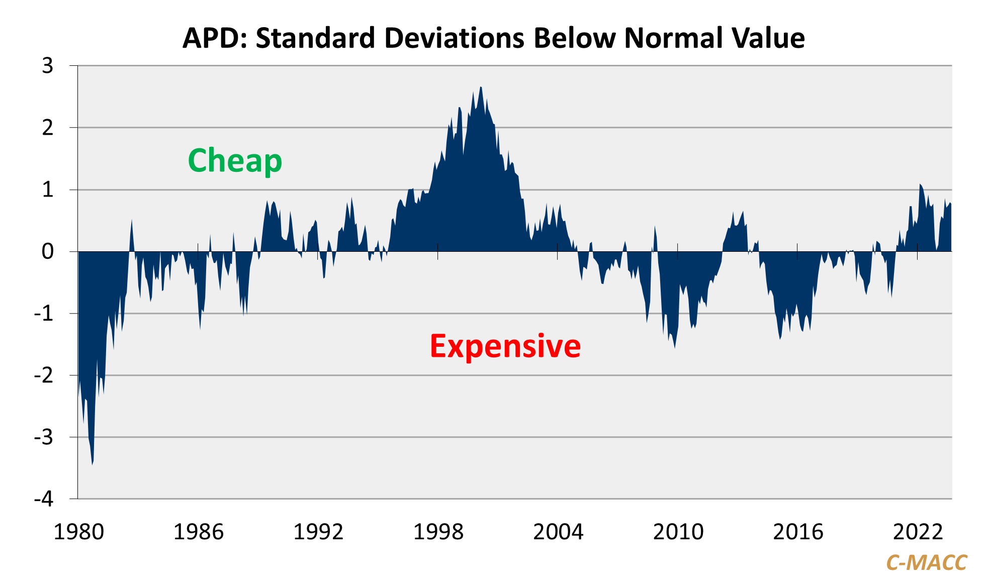 Exhibit 1: This is an analysis of valuation relative to the S&P 500 – you cannot do anything directly comparative with ESG ratings or performance (APD looks cheap)