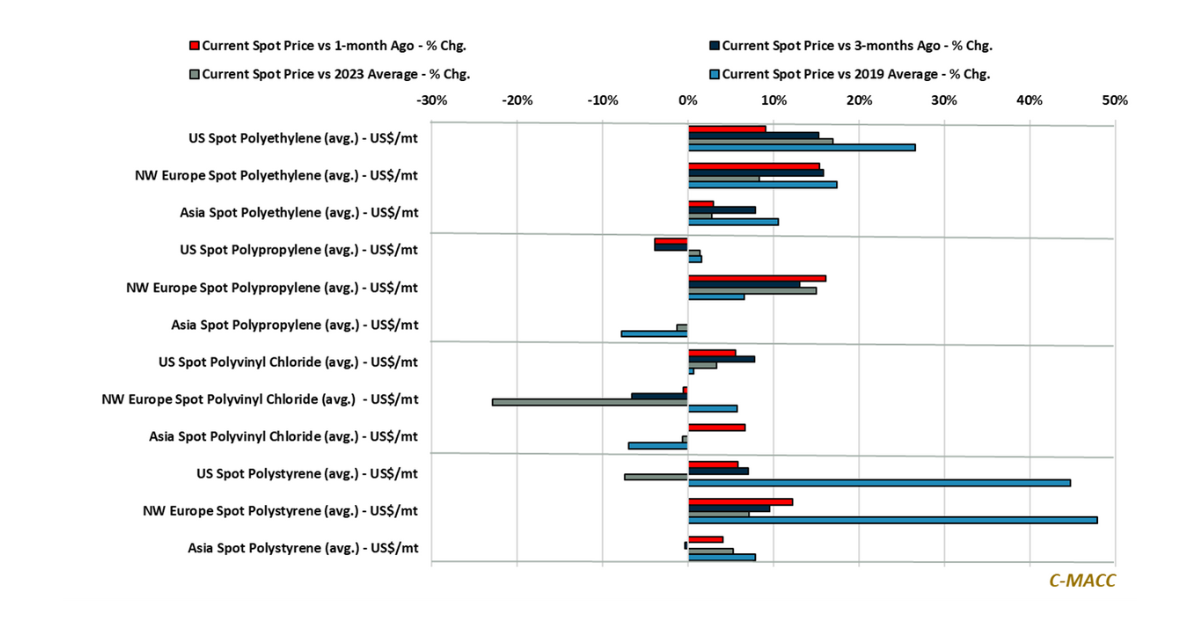 Base Chemical Global Analysis Global Polyethylene Prices Rise Further, Most Other Polymer Chains Mixed YTD Feedstock Market Trends: Brent Crude oil and Ex-US naphtha values fell WoW relative to US natural gas and USGC ethane values, though the global chemical February 26, 2024 No Comments