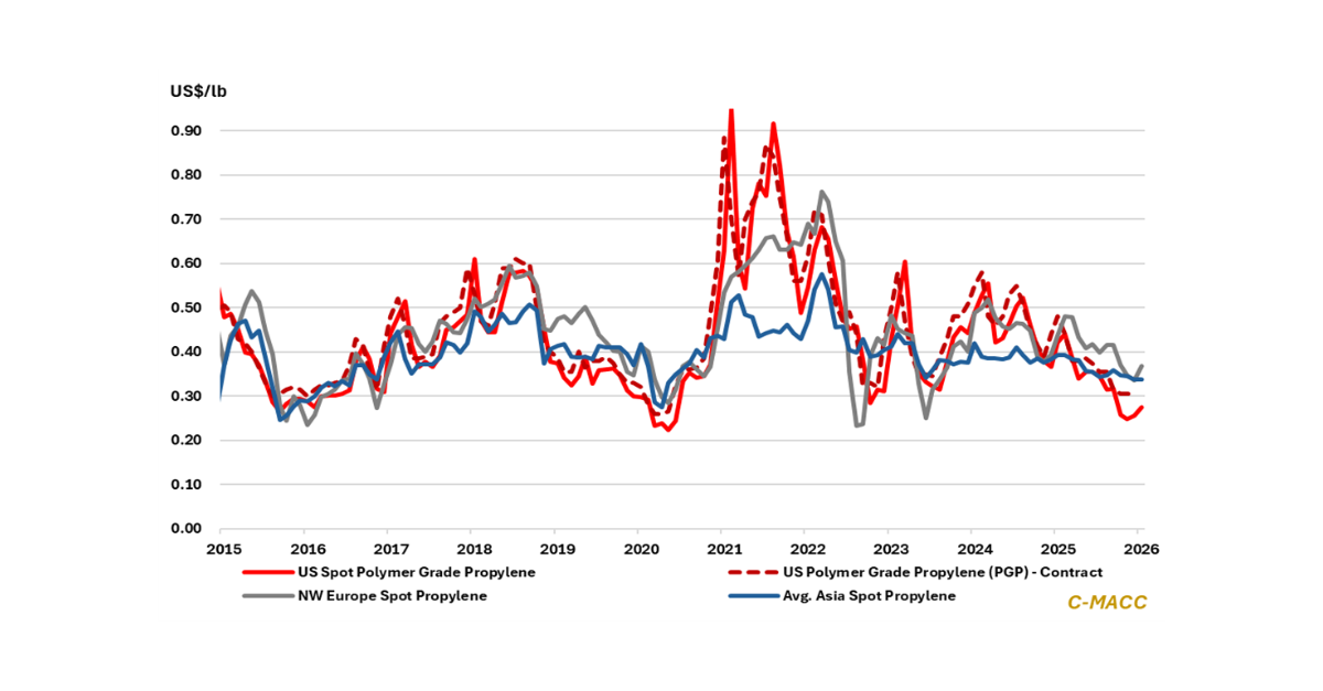 • Downstream/Other Chemicals: The freight rates between China and the US and Europe are falling from their YTD highs, suggesting a rebalancing ahead as low-priced Asia products converge with premium-priced Western goods.