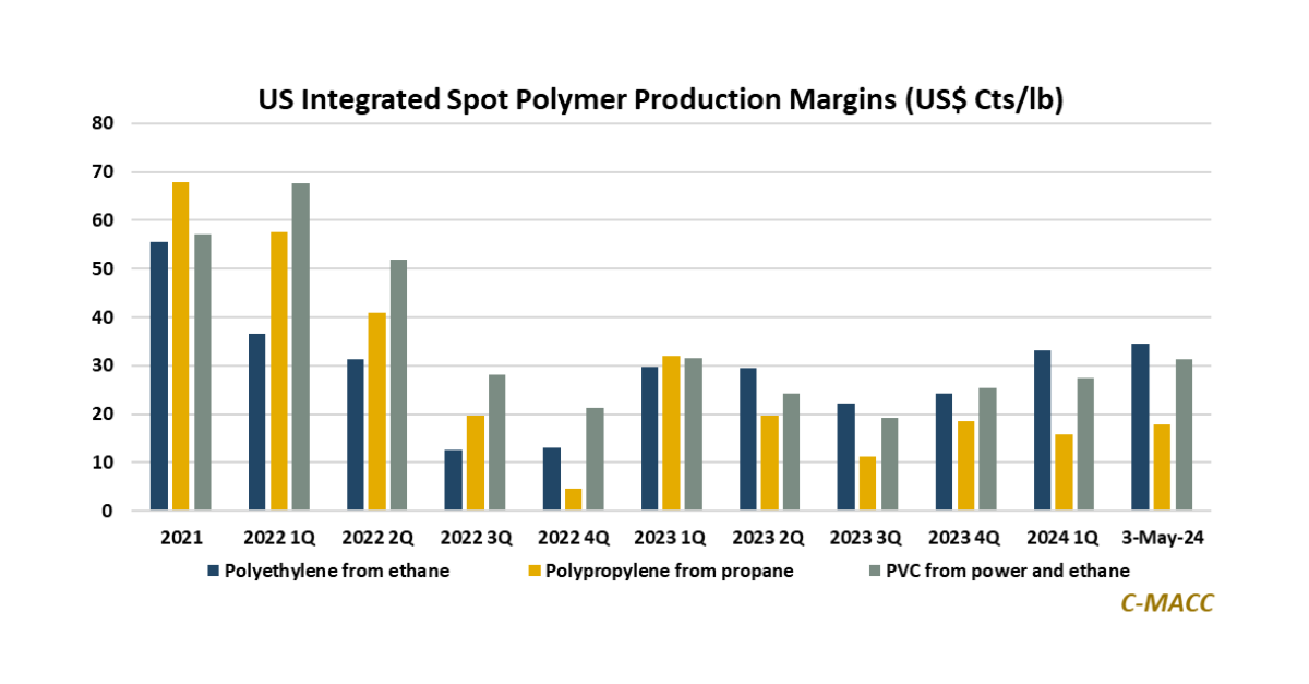 Base Chemical Global Analysis US Integrated Polymer Margins Remain Mostly Higher Than Their 1Q24 Average; This Could Change By 3Q24! Polymer Market Trends: C-MACC CEO Cooley May and PXi Founder Robin Chesshier are attending the NPE conference this week, where we will discuss our polymer May 6, 2024 No Comments