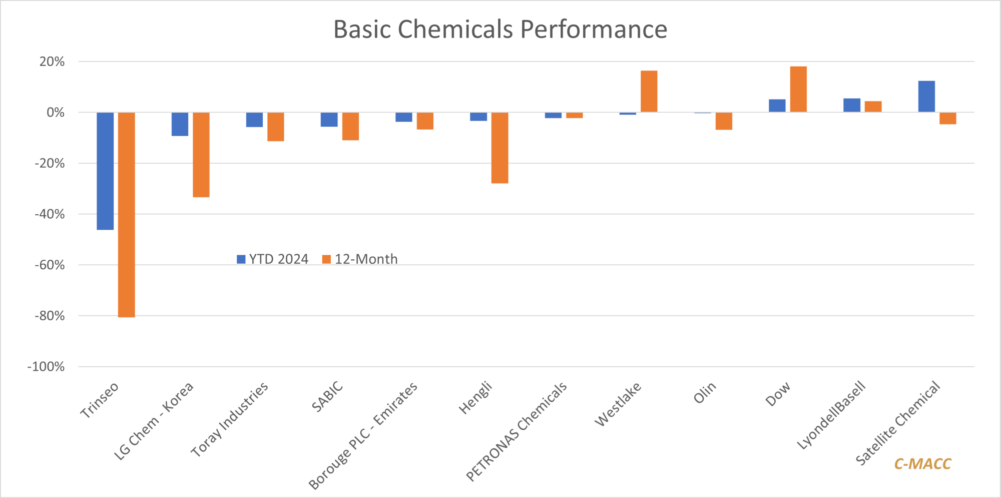 - Many chemical sector stocks presently look expensive on an absolute basis, especially in the face of weaker fundamentals, but all look very cheap in an inflated market. We all know about the last bubble correction!
