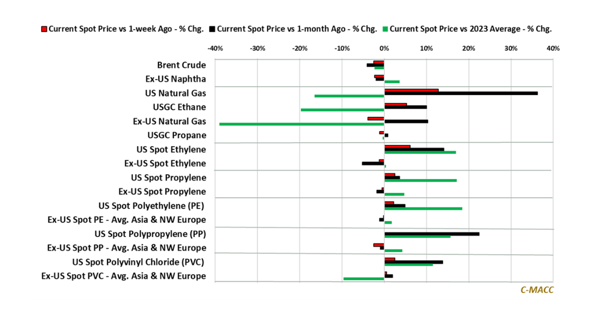Base Chemical Global Analysis Mixed Emotions – US Spot Polyolefin Price Strength Links to Supply Concerns, As Other Regions Deal With Oversupply Chemical Market Trends: US spot polymer prices generally reflect strength relative to overseas markets WoW, with US polyethylene (PE) reflecting the most strength and NW June 10, 2024 No Comments