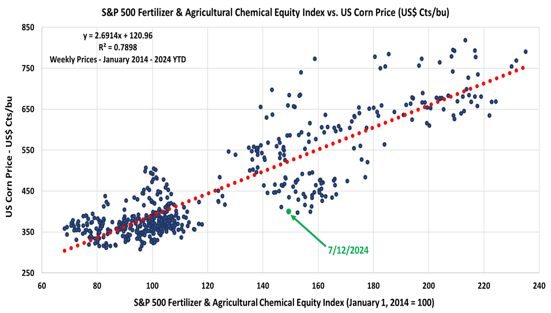 - General Thoughts: The S&P 500 Fertilizer & Agricultural Chemical equity index has underperformed in 2024, but several factors have partly offset crop market weakness to keep sentiment levels higher than many had feared.