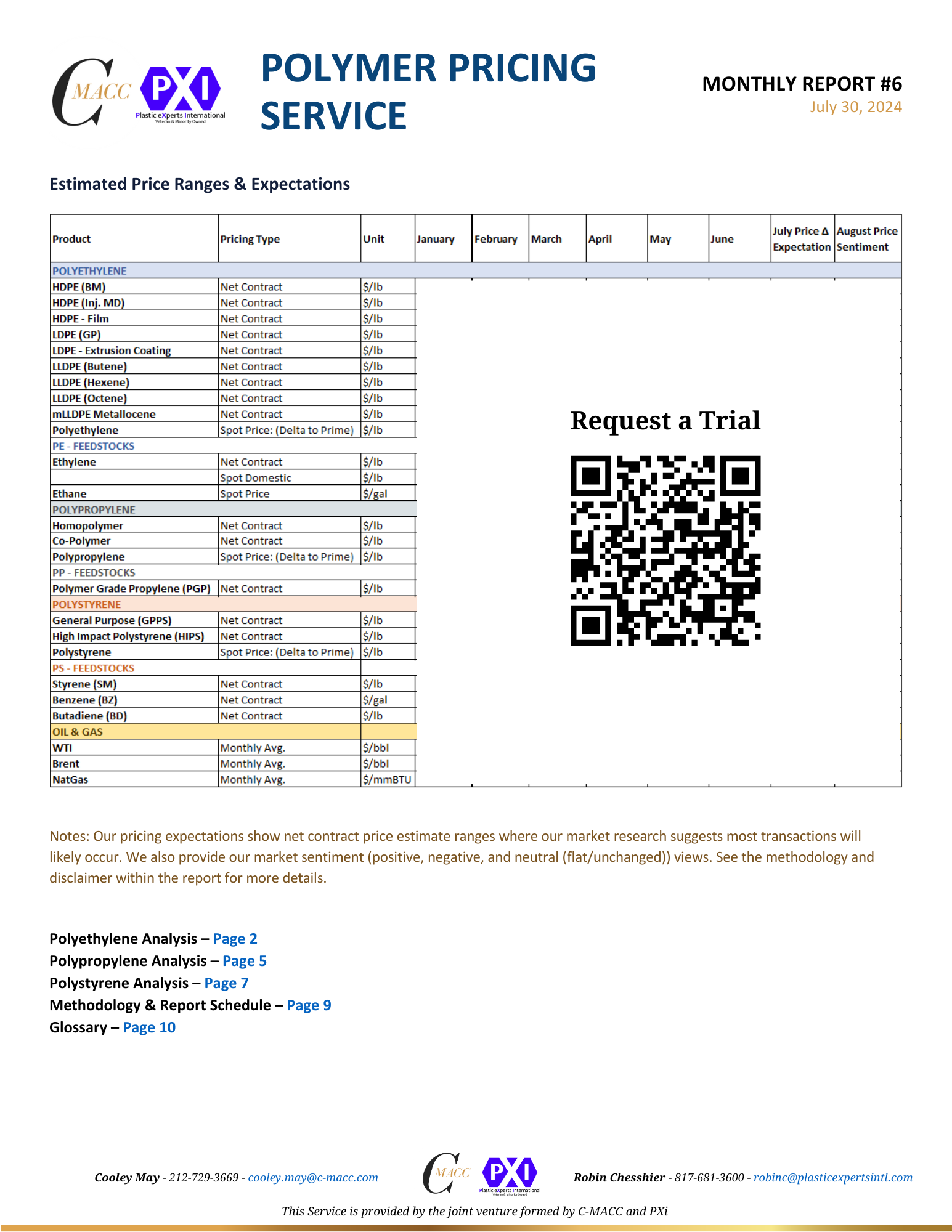 General Thoughts: US spot ethylene and propylene production margins significantly strengthened in July, and we discuss why we see more risk in US spot propylene