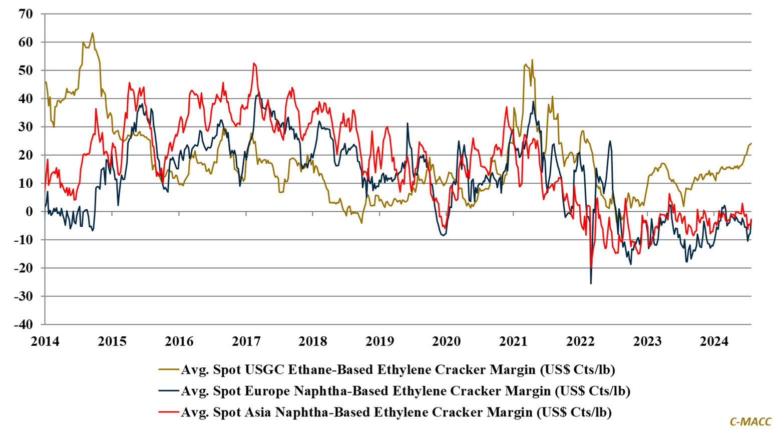 Exhibit 1: US spot ethylene margins hit a fresh 2024 YTD high this week; Europe and Asia remain under pressure.