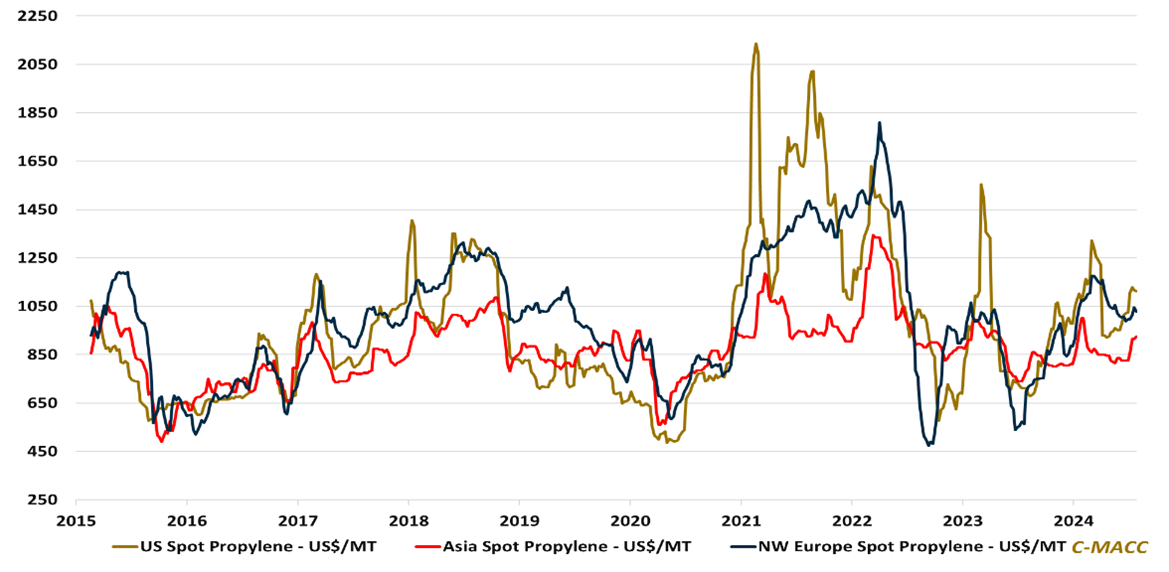 US Spot Ethylene & Propylene Margins Strengthened In July, Both To Weaken In 2H24 – Propylene Derivative Prices Most At Risk