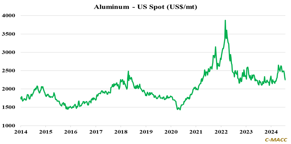 - General Thoughts: Aluminum is an example of a critical mineral that saw a sharp price decline in July as green sector and Chinese demand failed to meet expectations; it shares similar drivers with many other critical minerals.