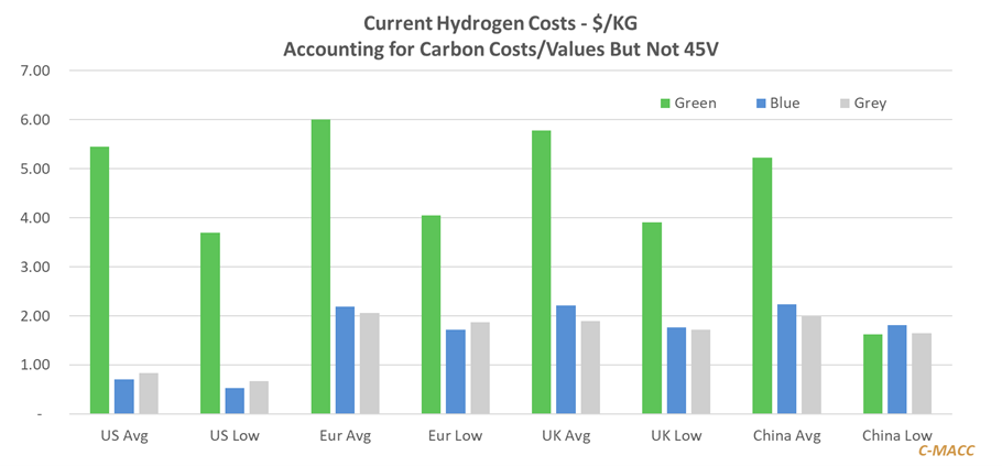 - At our very well-attended dinner last week, there was broad consensus that buyers willing to pay a lot more for products with a clean hydrogen component are elusive, but cost-competitive products will take share.