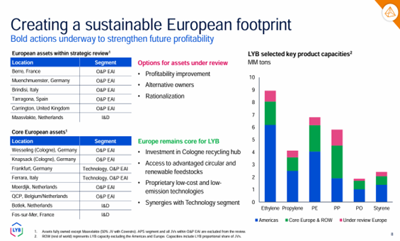 Exhibit 8: LyondellBasell displays its efforts and strategy to create a sustainable European products business.