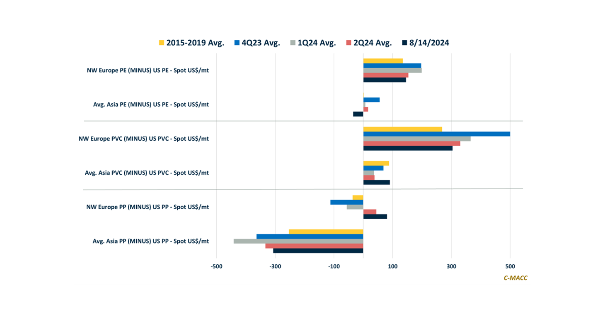 Global Market Analysis A Plastics Focus Swing To Emissions Adds To The US Competitive Edge: Exports Rise Again? General Thoughts: We compare US, Europe, and Asia spot polymer prices, showing that Europe prices reflect premiums – a plus for its post-consumer recycled (PCR) August 14, 2024 No Comments