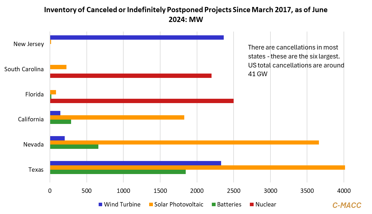 Exhibit 1: A lot of projects get canceled (US power in the chart), but not many once capital has been deployed.