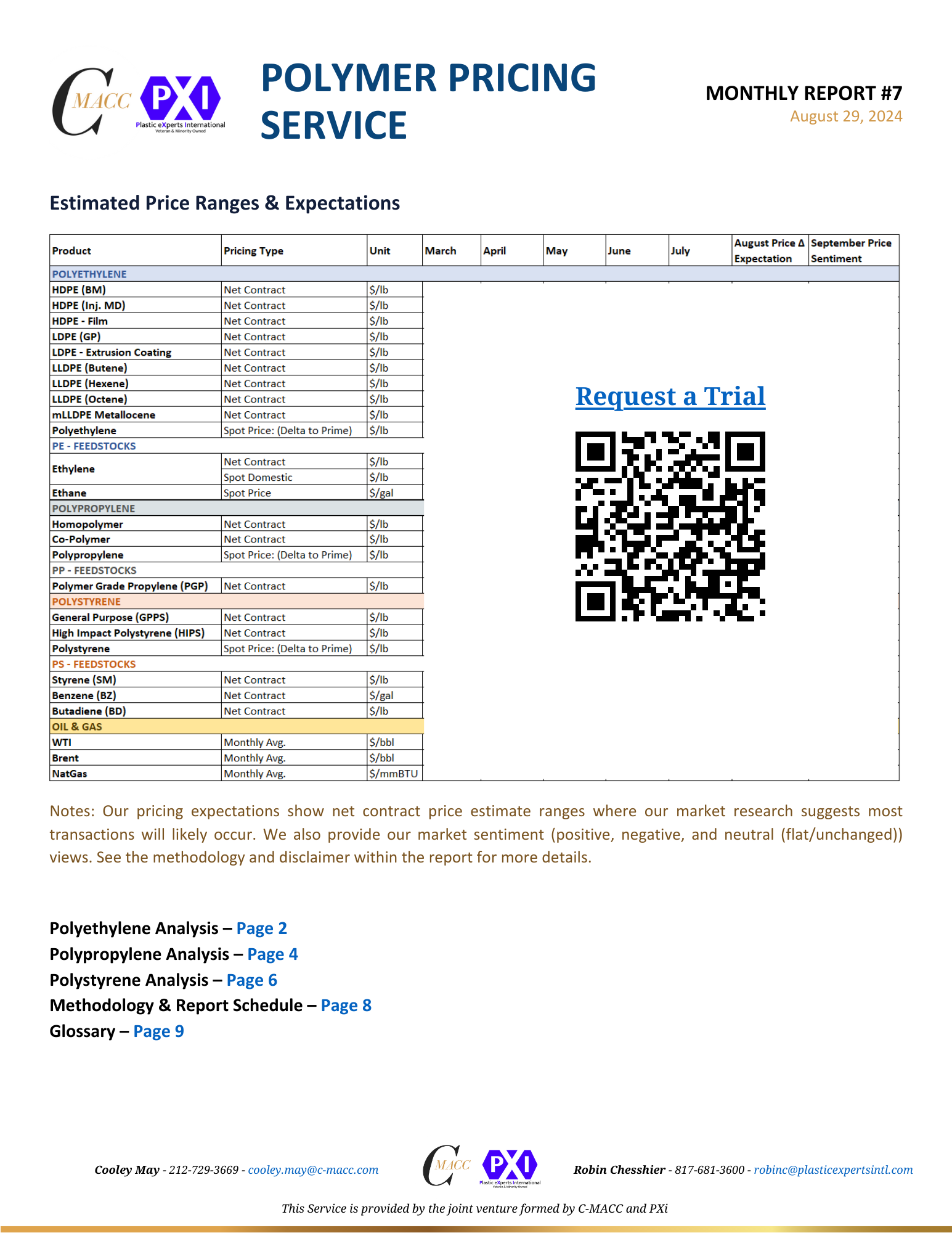 Polymer Pricing Service Polymer Price Expectations – Monthly Report #7 – August Table of Contents: Polyethylene Analysis Polypropylene Analysis Polystyrene Analysis Methodology & Report Schedule Glossary Purchase this report or request a trial August 29, 2024 No Comments
