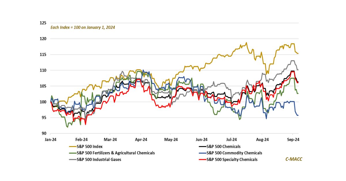 General Thoughts: US commodity chemical equities have underperformed the S&P 500, and the chemicals sector YTD – a likely drop in commodity prices, absent more