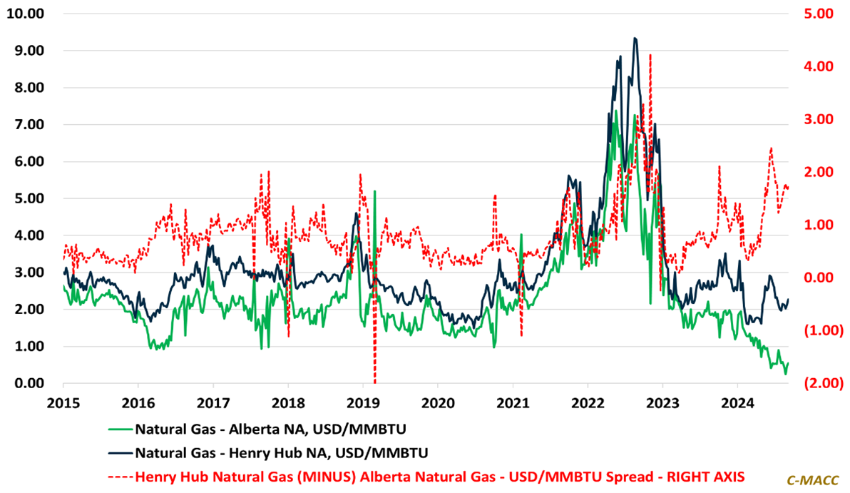 - General Thoughts: Alberta natural gas prices have fallen substantially relative to US Henry Hub levels YTD, adding to the Canadian cost advantage in an already advantaged North American market relative to Asia and Europe.