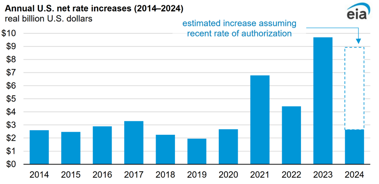 Exhibit 13: Trend toward electric utility rate increases in regulated markets continues in 2024