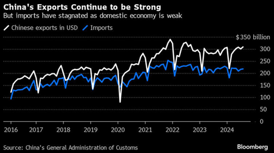 Source: Bloomberg, China’s General Administration of Customs, September 2024