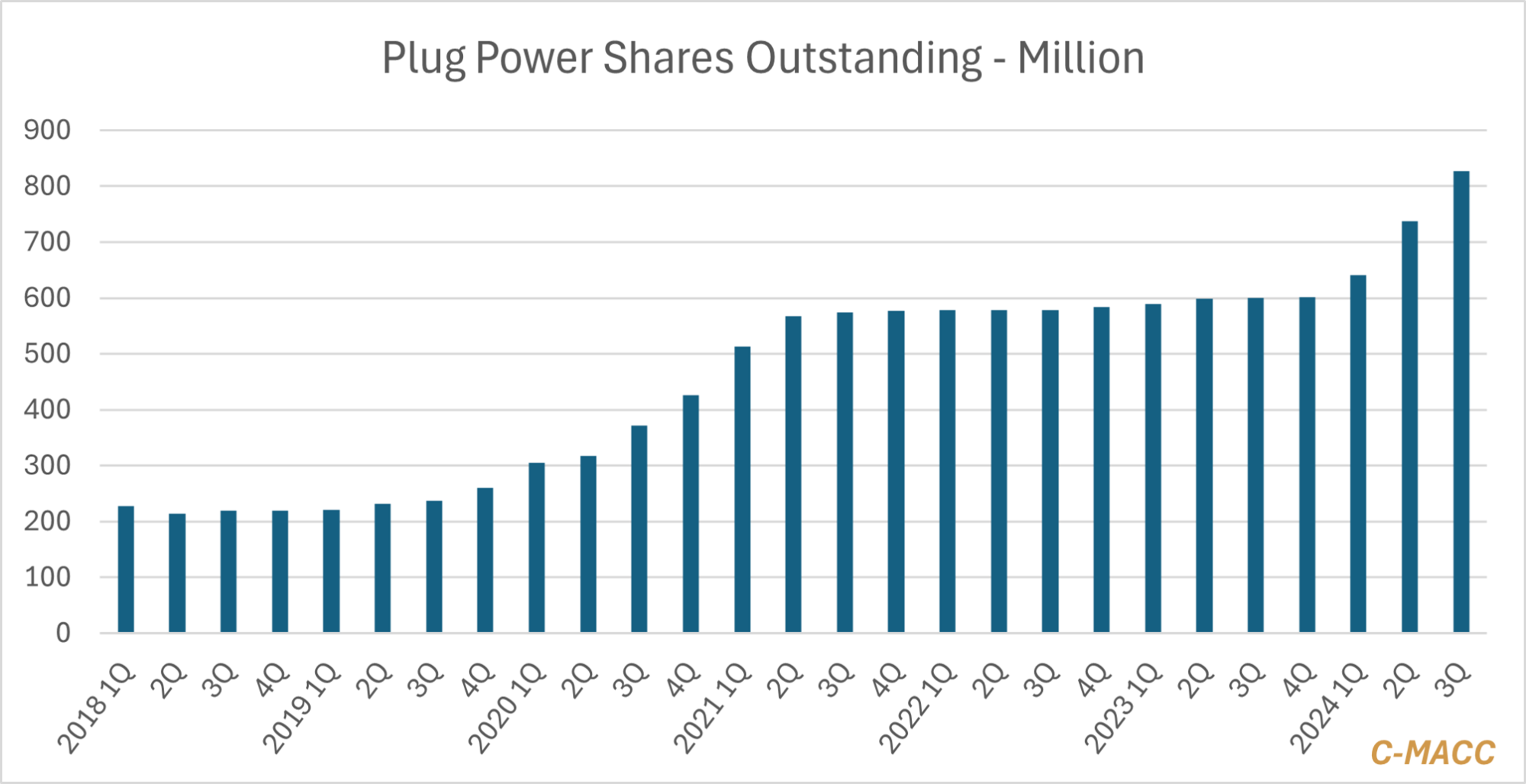 Plug Power has little choice but to look between the cracks in the pavement for any cash it can find to stay operational, but it may all still be for nothing. The company has spent the last three quarters diluting shareholders meaningfully as it issued stock through both an ATM (starting in 1Q) and a secondary offering in July, with the cash raised being used to offset the cash burn in the business, not for additional investment, so the company is selling shares to stay solvent. The opportunity to rethink the business, rebase costs, and think about the austerity that is now needed was more than a year ago, but at that time, Plug and many others were looking at the optimism in the hydrogen market and the indication of interest around equipment demand and decided to plow forward in the hope that it would all come together. Instead, the stock issuance has only contributed to investor fear and driven the stock lower – so much so that meeting cash flow needs in 4Q would require a lot more dilution than we have seen in the first three quarters – note in the chart below that we are basing 3Q 2024 on only the secondary offering – Plug still has the ATM in place. It could have raised more cash through this program but with more dilution. (note: an ATM is an “at the market” share sale, where a broker is authorized to sell treasury shares from the company on a daily basis, and it is limited in both how much can be done each day and how much can be done in aggregate, by an agreement filed with the SEC- Plug Power has such a high daily trading volume, that the company has been able to raise a lot of cash this way).