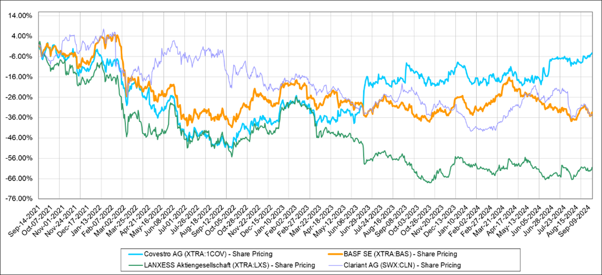 Exhibit 2: The general weakness in Europe is reflected in most stock values – the ADNOC bid is supporting Covestro