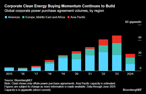 - Sustainability/Energy Transition: The cost of electrolyzer systems is falling, but the cost differences between the West and China remain significant. We also highlight the strength YoY in 1H24 corporate clean energy PPAs.
