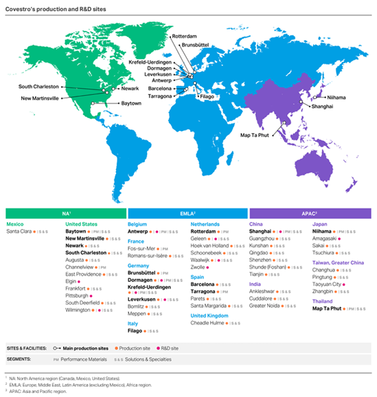 Exhibit 6: We highlight Covestro production & R&D site locations.