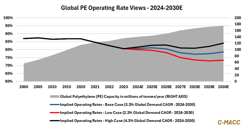 - General Thoughts: The global polyethylene (PE) market reflects oversupply, and this setting appears more likely to worsen between now and year-end 2030 than improve as more capacity arrives and demand growth slows.
