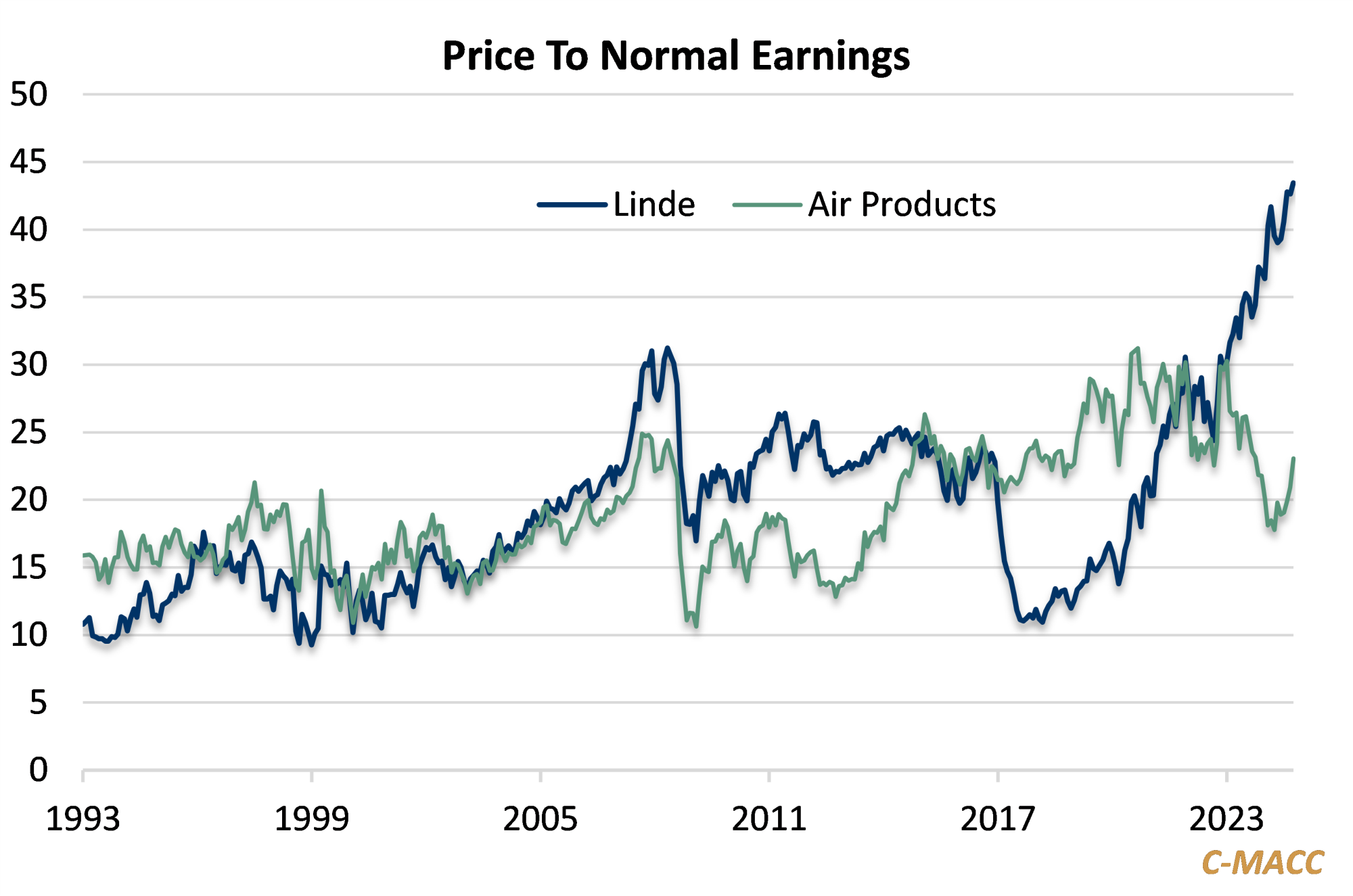 • Key Takeaway: Linde and Air Liquide have successfully capitalized on low-risk, predictable business models, which makes them more attractive to investors. In contrast, Air Products’ recent strategy has exposed it to significant risk, especially with cost overruns in hydrogen projects.