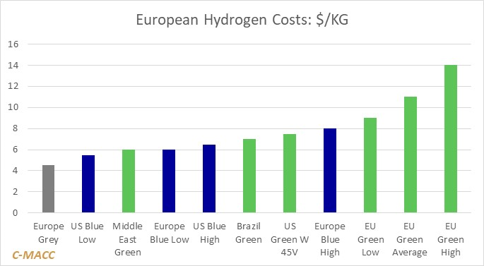 - Those looking to move green or blue hydrogen to Europe to exploit lower power or natural gas costs will pay a lot to make ammonia, ship ammonia, and then crack ammonia, costs will still be lower than Europe green costs.