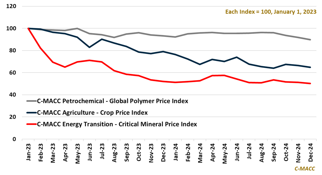 • Supply Chain/Commodities: Brazil’s spot PVC prices rose recently relative to Asia, Europe, and the US, following its 2H24 protectionist policy support. We will discuss critical mineral price trends from 2024 relevant for 2025.