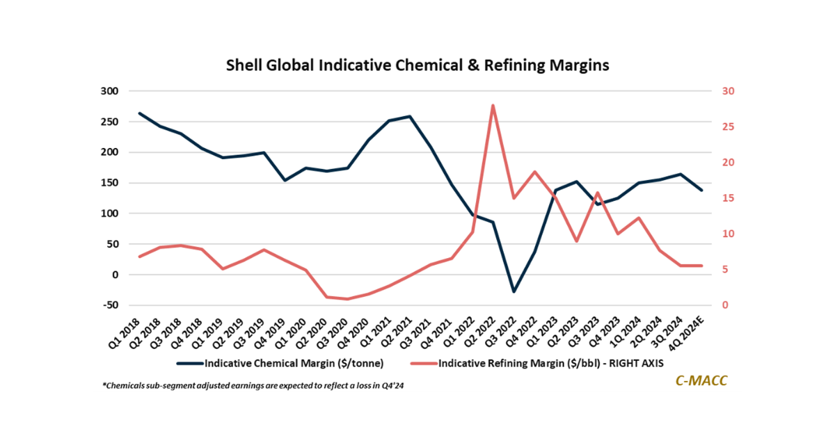 Global Market Analysis Waiting on the World to Change – The Unprotected Sit “Tariffied” As Oversupply Risks Rise; Early 1Q25 Trends Mostly Weak! General Thoughts: Global average chemical and refining margin moves in 4Q24 mostly resemble those shown in Shell’s business update – weaker-than-expected 1Q25 trends are the January 9, 2025 No Comments
