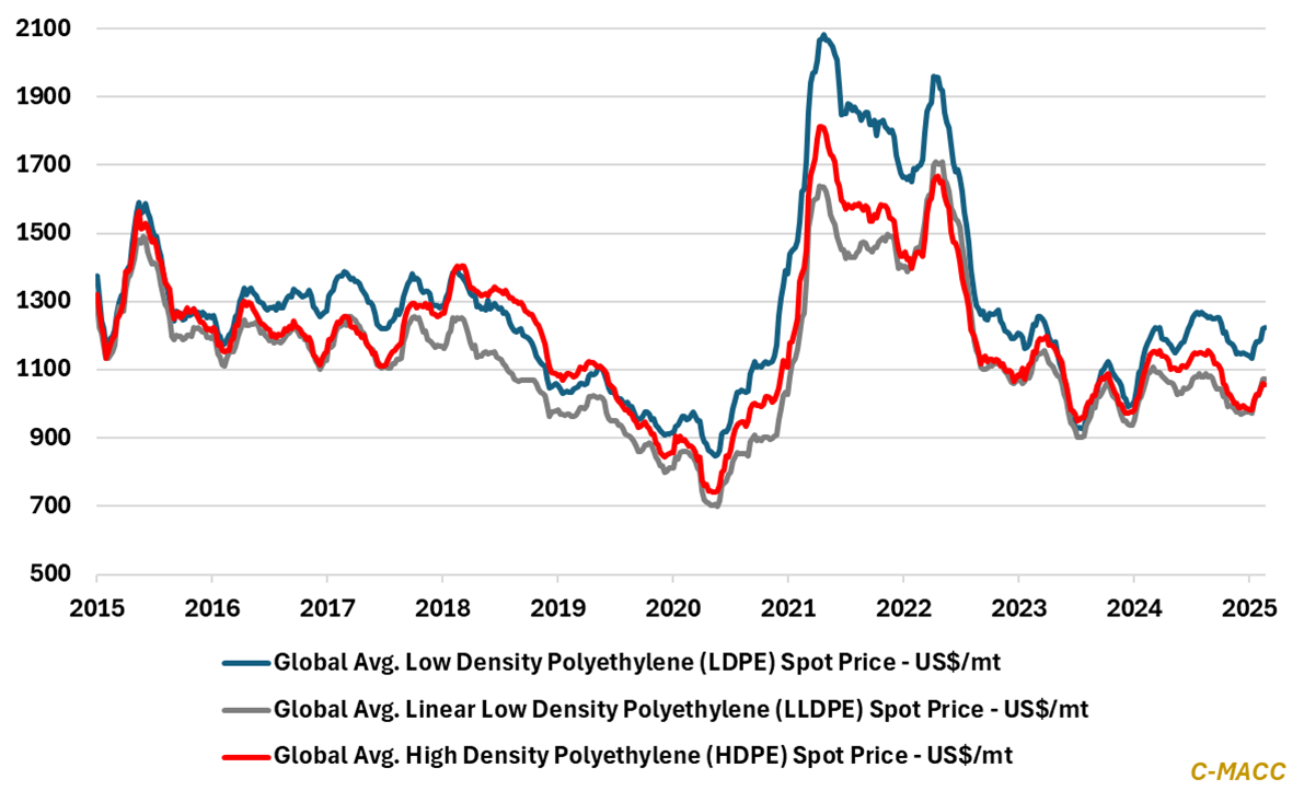 - Polyvinyl Chloride (PVC): US spot PVC prices reflect some of the lowest levels globally but are caught between high inventories and likely demand improvement ahead in late 1Q25 – US spot PVC downside risk appears low.