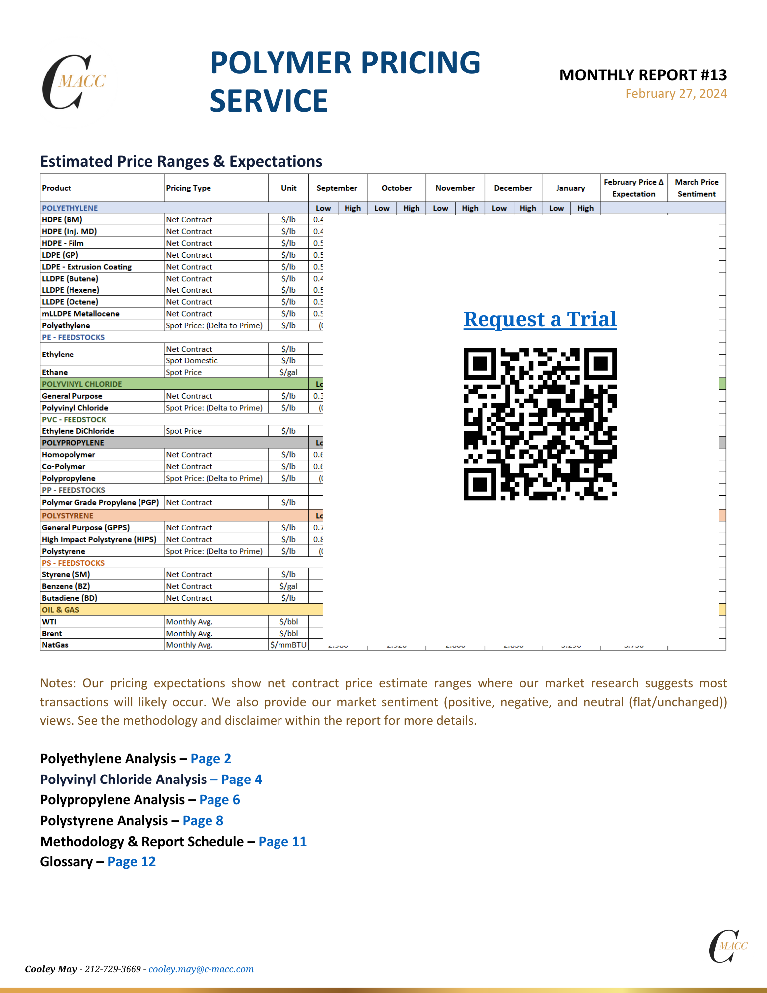Polymer Pricing Service Polymer Price Expectations – Monthly Report # 13 Polymer Price Expectations – Monthly Report # 13 February 27, 2025 No Comments