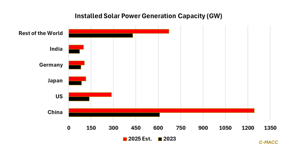 China’s significant global renewable power generation advantage, driven by solar energy, positions it strongly to compete in green product markets like hydrogen, where we think