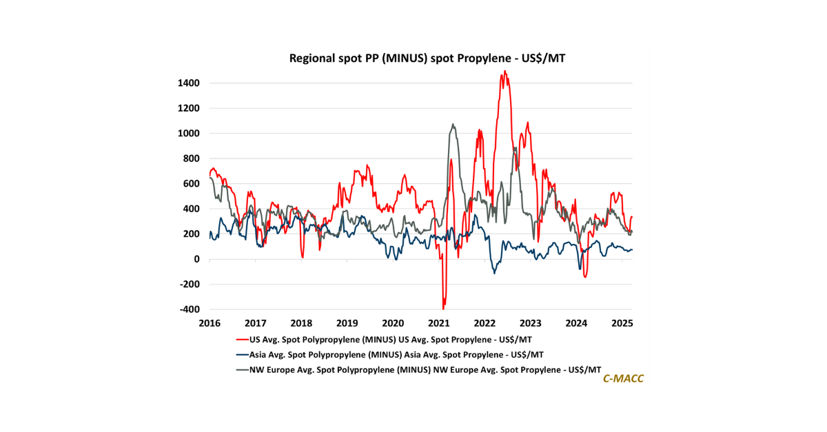 General Thoughts: Western polypropylene (PP) spot prices will likely fall toward Asia levels during the next three years as Asian production rises, moving Europe and