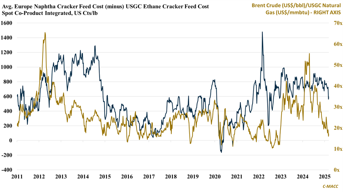 • General Thoughts: We discuss proposed European retaliatory tariffs on US goods, including polyethylene (PE), which is occurring alongside recent improvements in the EU cost position likely to benefit its manufacturers.