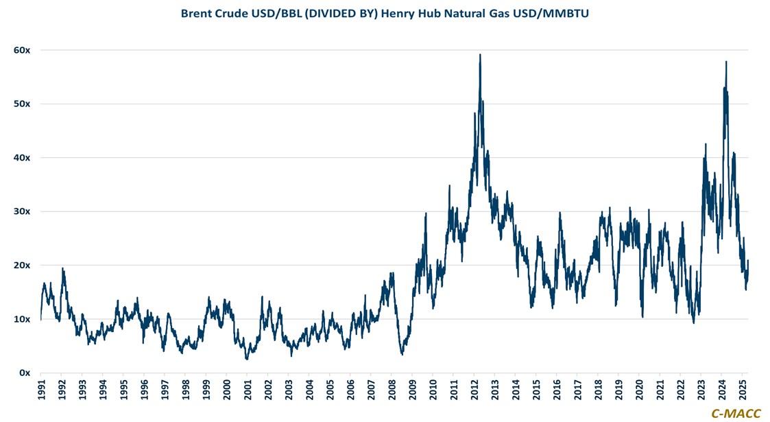 Exhibit 1: The oil-to-gas ratio is down YoY but generally reflects the 2014-19 average and wide US cost advantage.