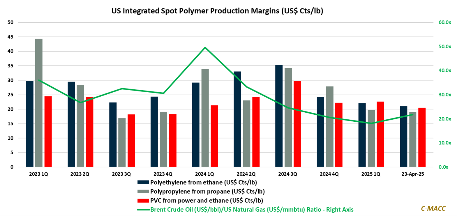 Exhibit 1 – Chart of the Day: US integrated spot polymer margins are slightly below their 1Q25 average.
