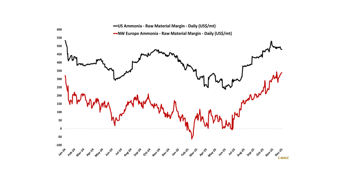 Global Market Analysis Tougher Than The Rest: Ammonia Brushes Off Cost Curve Flattening Pressuring Global Chemical Markets General Thoughts: Ammonia prices have surged to 2025 highs, while European and Asian natural gas prices have fallen to YTD lows relative to US levels, December 2, 2025 No Comments