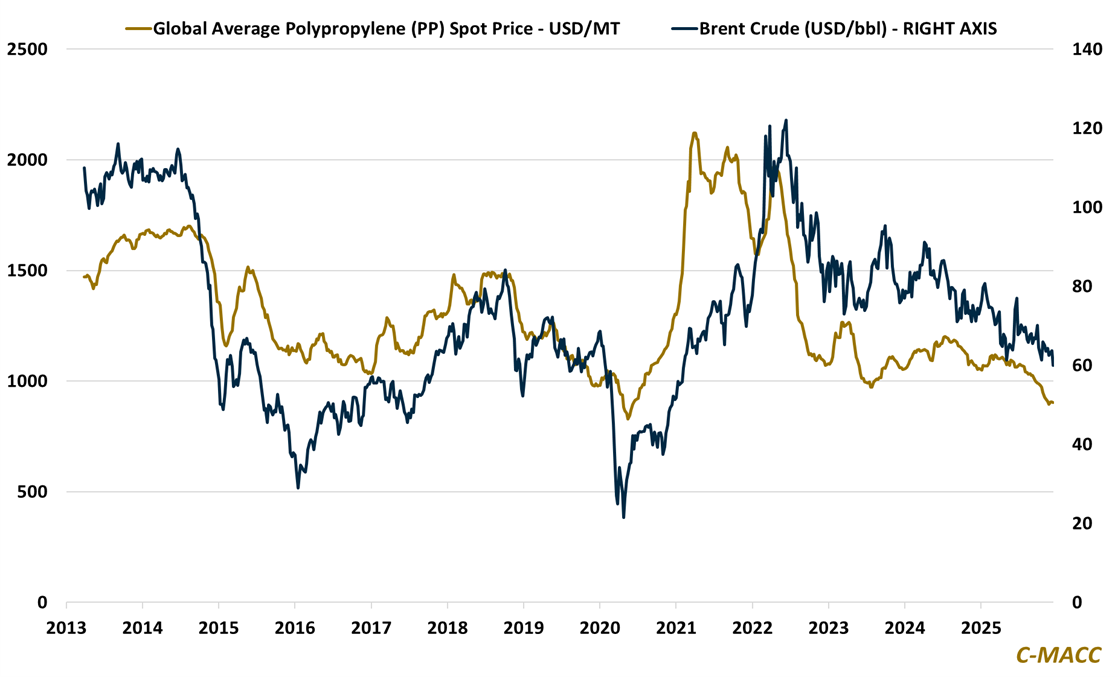 - General Thoughts: Global polymer markets are positioned to exit 2025 structurally oversupplied, as excess capacity further weakens oil-to-resin linkages and shifts 2026 outcomes toward rationalization over cyclical recovery dynamics.