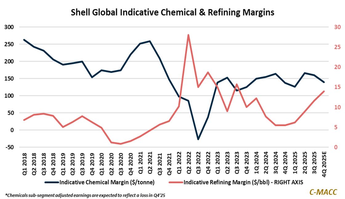 Exhibit 1: Shell reports chemical margin weakness as refining recovers amid global market imbalance.